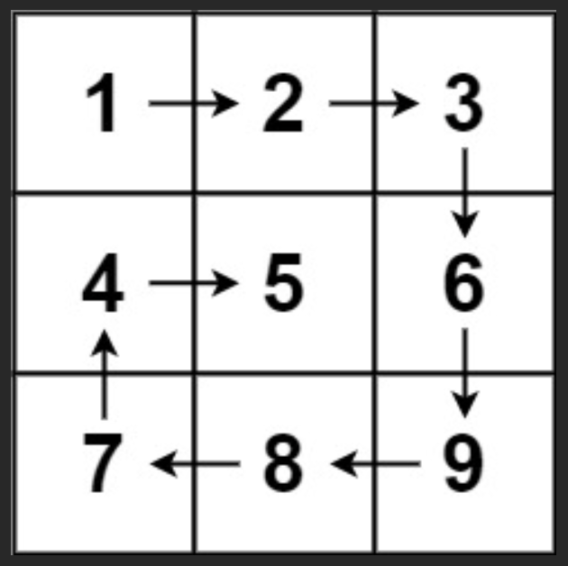 Output: [1,2,3,6,9,8,7,4,5]