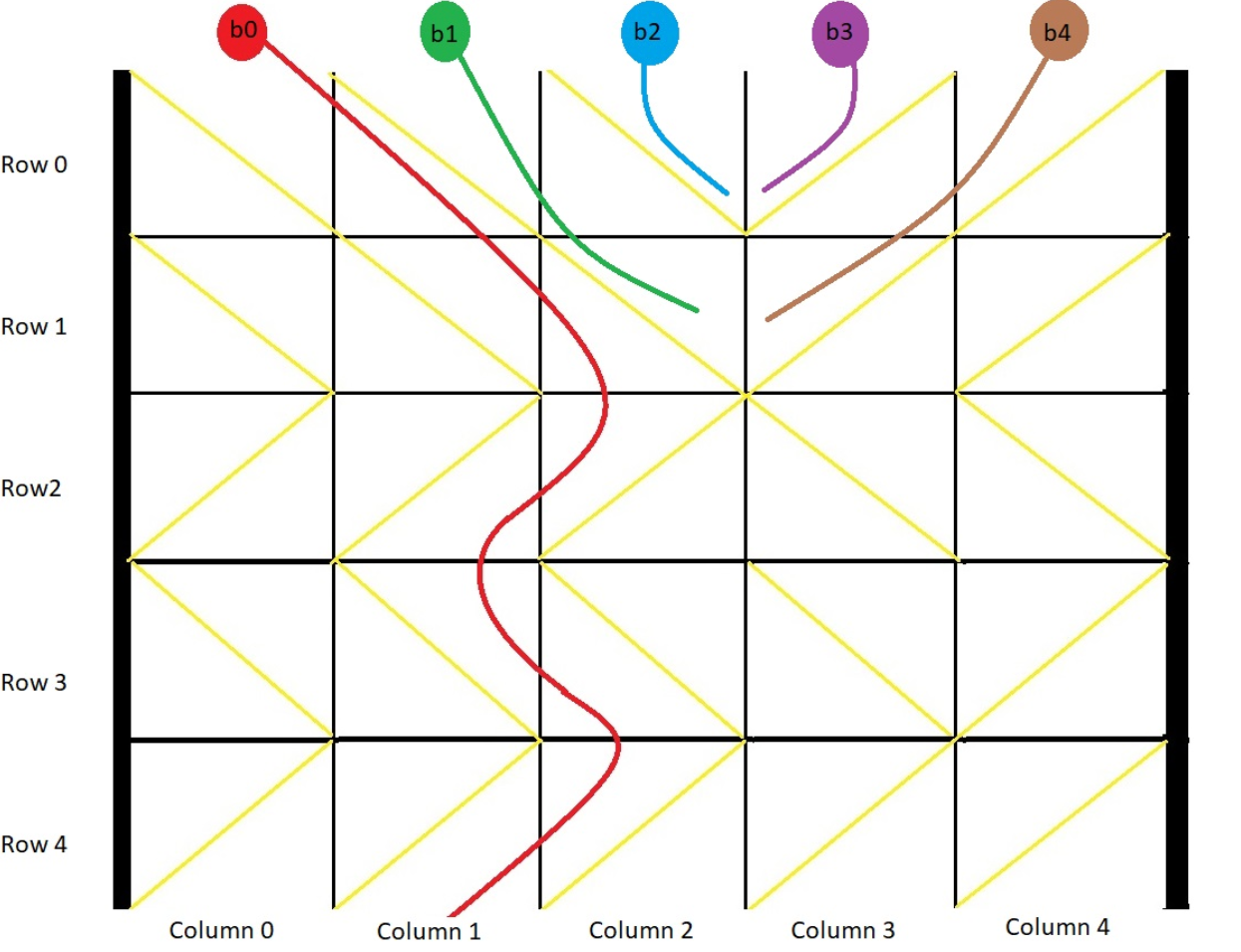 ballPosition[col] = findPosition(grid, 0, col);